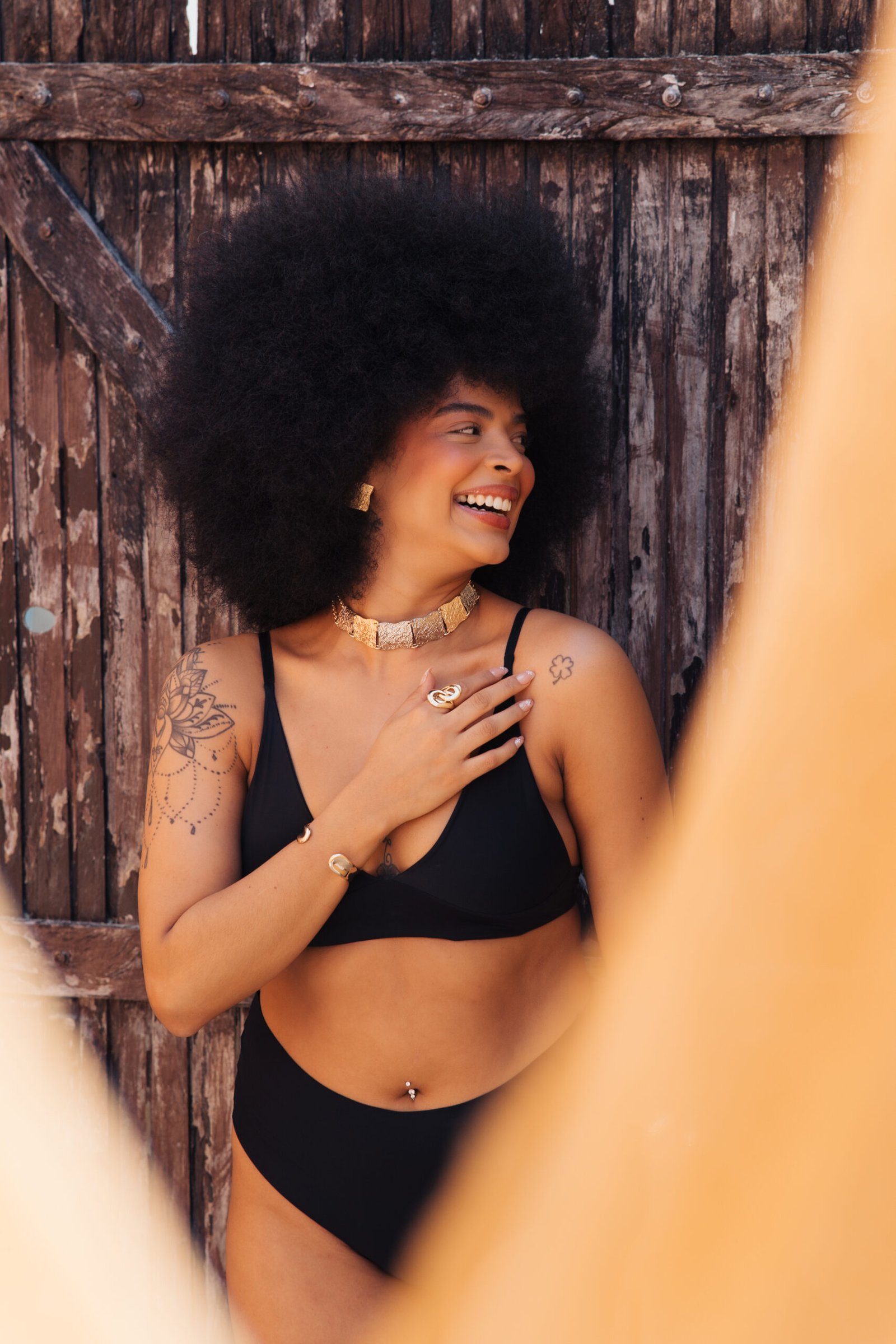 Sem aro e sem bojo, o sutiã triângulo proporciona suporte natural sem abrir mão do estilo e conforto. Ideal para mulheres que procuram uma alternativa leve ao modelo convencional, ele é ajustável com reguladores nas alças e nas costas, conferindo adaptabilidade ao seu formato único. Os tamanho G e GG contam com elásticos internos e alças mais largas garantindo maior conforto para corpos maiores. Esse design inovador garante uma combinação perfeita de funcionalidade e elegância.
